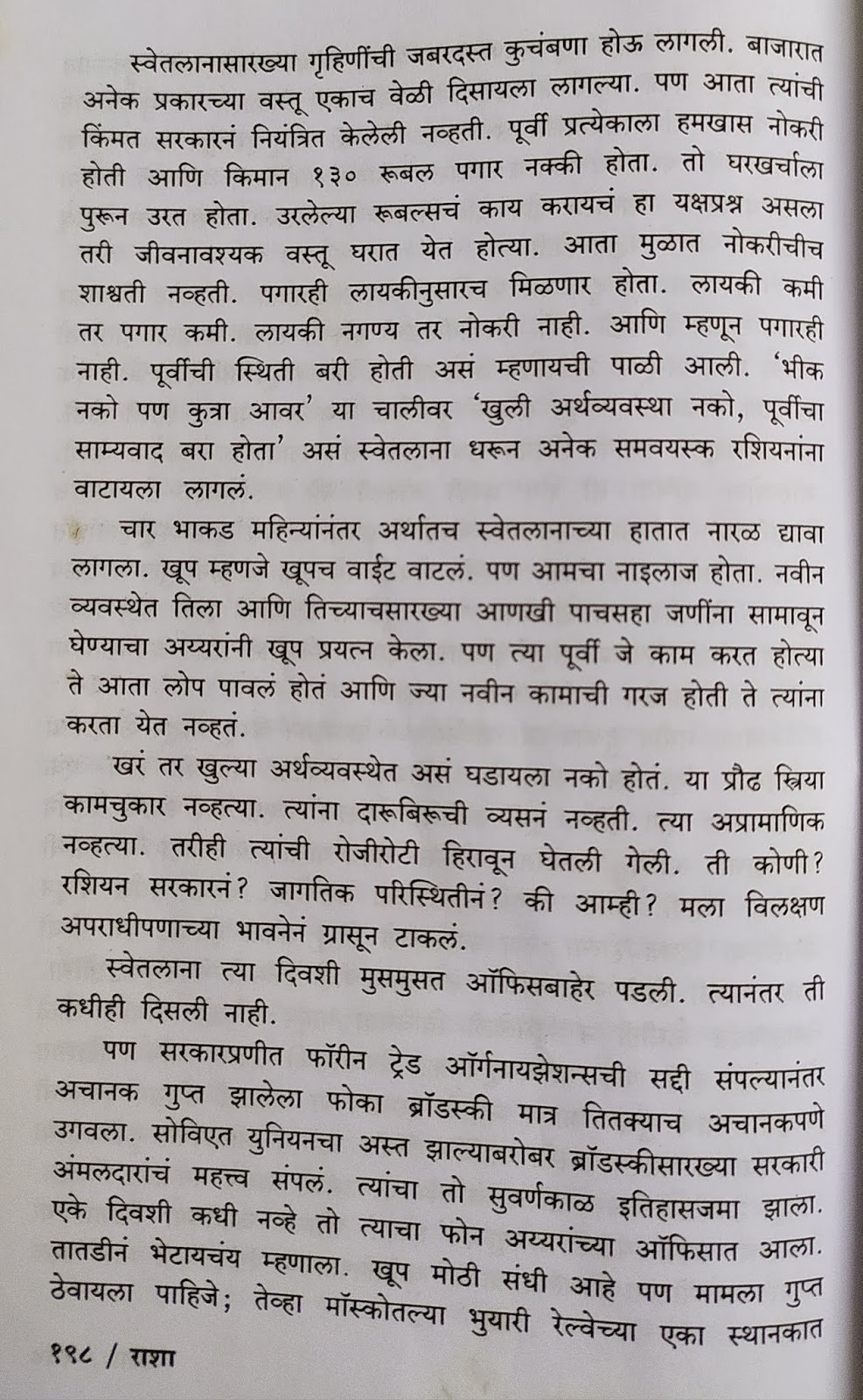 पुस्तकात रशियाच्या आणि लेखकाला भेटलेल्या व्यक्तींच्या- खरं म्हटलं तर वल्लींच्या- अशा कितीतरी सुरस चमत्कारिक कथा आहे आहेत. ते वाचायला मजा येते. हे पुस्तक विचारप्रवृत्त सुद्धा करतं. समाजात उच्च-नीच, गरीब-श्रीमंत असा भेदभाव आहे; श्रमाला प्रतिष्ठा नाही असं आपल्याला दिसतं. पण म्हणून सगळ्यांना सारखं काम, सारखा पगार, सारखा मान असं द्यावं, तरी समाजाचं समाधान होत नाहीच. लोकांची झटून काम करण्याची वृत्ती जाते. नवं काही करायची उमेदच जणू नाहीशी होते. आणि “समानांमध्ये जास्त समान” असा वर्ग तयार होतो. त्याउलट भांडवलशाहीत काळाबरोबर पावलं न टाकणाऱ्याची असहाय्य फरफट होते. या दोन्हीचा तोल साधणारी समाजव्यवस्था कशी असेल, ती कशी येईल आणि कशी टिकेल यावर समाजशास्त्रज्ञ विचार करतच आलेत. आपल्याही मनात तो विचार सुरू होईल. शरद वर्दे यांचं हे पुस्तक म्हणून नक्की वाचा त्यांची मी आधी वाचलेली दोन पुस्तकही नक्की वाचावी अशीच आहेत. त्यांची परीक्षण इथे वाचू शकाल.
