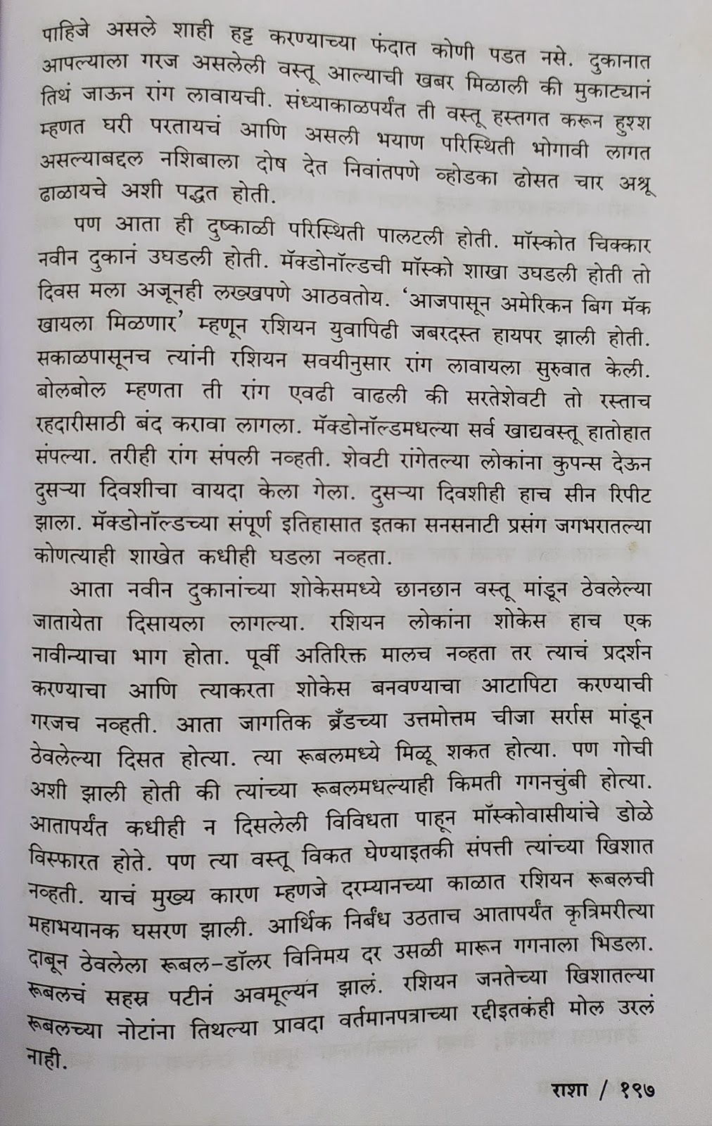 एकोणीसशे ऐंशीच्या दशकातला रशिया तुम्ही पाहिला आहे का? त्यावेळी रशियाला जाण्याचा योग तुम्हाला आला असेल तर तुम्ही तिथली पर्यटन स्थळ पाहिली असतील. पण तुम्हाला त्या वेळच्या एखाद्या रशियन कंपनीबरोबर वाटाघाटींसाठी कधी जावं लागलं होतं का? तुम्ही अशा कामासाठी रशियात गेला असता तर कम्युनिस्ट राजवट कशी होती, तिचा लोकांच्या वागण्यावर, विचारांवर रोजच्या जगण्यावर कसा परिणाम झाला होता हे तुमच्या लक्षात आलं असतं. असो ! आता ती संधी मिळाली नाही म्हणून वाईट वाटून घेऊ नका. कारण शरद वर्दे यांच्या या पुस्तकात आपल्याला ही संधी मिळणार आहे.