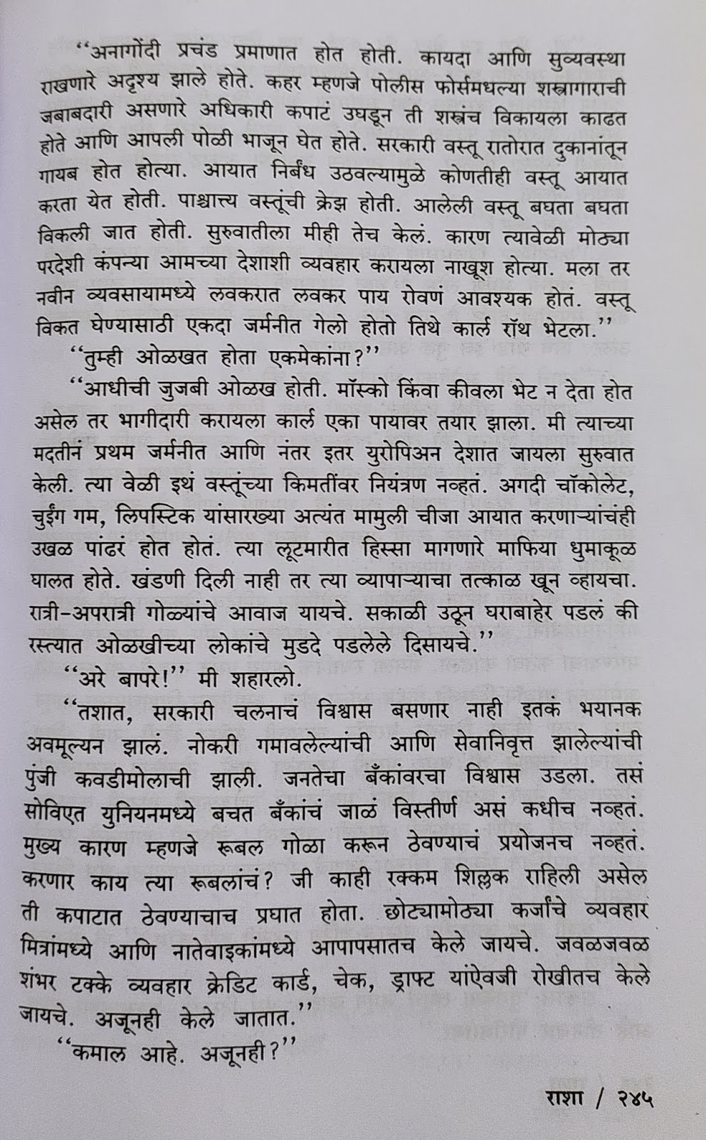 पूर्वीची सरकारी मक्तेदारी गेली म्हणून लाचखोरीला चटावलेल्या अधिकाऱ्यांचे साधू झाले नाहीत. भ्रष्टाचाराचे नवीन मार्ग त्यांनी धुंडाळले. लेखकाच्या भागीदाराच्या बोलण्यातून त्याची जाणवलेली झलक.