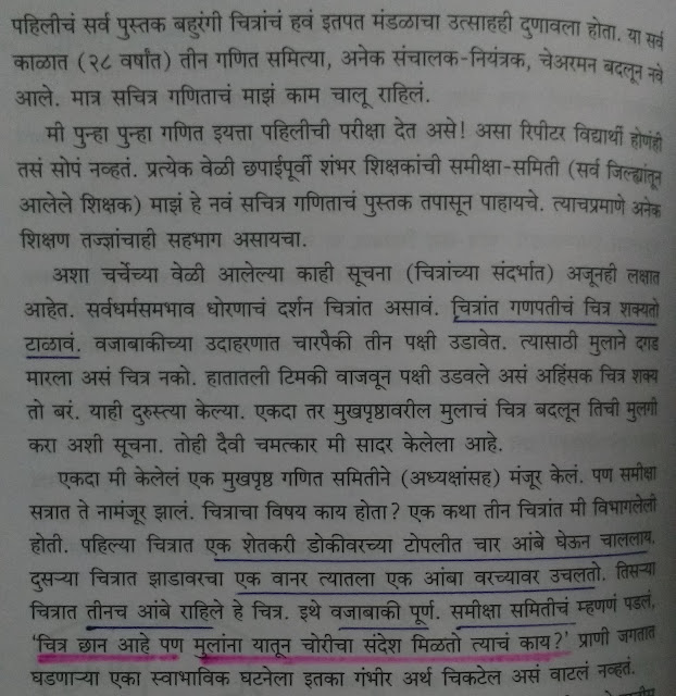 दस्तऐवजांमध्ये चित्रकाराचे नाव देत येत नाही. म्हणून चित्राखालची सही त्यांना काढायला लागली !! प्रत्येक कामाच अवाका निराळा, गरजा निराळ्या आणि त्या अनुषंगाने भेटणारी माणसं निराळी. शिदंनी हे वेगवेगळे अनुभव आपल्यासमोर मांडले आहेत. गणिताची पुस्तक करतानाचा अनुभव वाचून बघा.