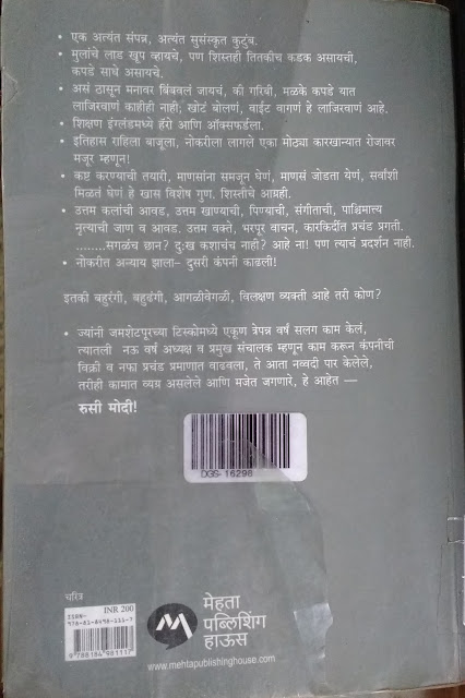 म्हणून मी पहिल्या परिच्छेदात लिहिलं तसं हे रुसी मोदी यांच्या विषयीचे हे पुस्तक आहे; चरित्र वाटत नाही – स्तुतिगाथा वाटते.