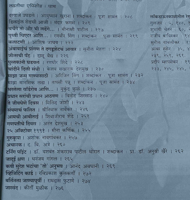 “लढतीचा एपिसोड ४” मध्ये गेल्या ७-८ महिन्यांत लॉकडाऊन (टाळेबंदी),क्वारंटाईन (घरबंदी) मान्यवरांनी कशी स्वतः अनुभवली याचे स्वानुभवकथन आहे आणि भोवतालच्या परिस्थितीवरचे चिंतन या पद्धतीचे लेख आहेत.