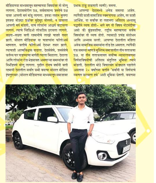’सत्य’धर्माचा पुजारी – वली रेहमानी (प.बंगाल) – विशीत असणरा रेहमान फेसबुक, यूट्यूब, इन्स्टाग्राम सारख्या समाज माध्यमांतून राजकीय सामाजिक विषयांवर बोलणारा आणि अल्पावधीत “सोशल इन्फ्लुएन्सर” झाला. त्याची कहाणी.