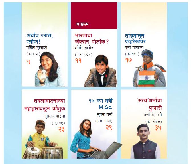 ऑगस्ट १९४८ रोजी साने गुरुजी यांनी सुरू केलेल्या साधना या साप्ताहिकाचा हा लहान मुलांसाठीचा दिवाळी अंक आहे. भारतातील सहा राज्यांतील सहा मुला-मुलींची कर्तबगारी सांगणारा हा अंक आहे. ते लेख पुढीलप्रमाणे :