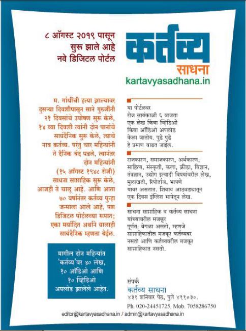 साधनाच्या नव्या उपक्रमाची ओळख करून देणारी एक जाहिरात