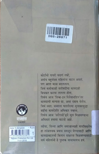 पुस्तकाच्या मुखपृष्ठावर म्हटल्याप्रमाणे भारतातल्या महिला कायद्यात होत गेलेले बदल, सुधारणा यांचा मागोवा घेणारे हे पुस्तक आहे. ब्रिटिश राजवटीत सतीबंदीचा कायदा करण्यात आला तिथपासून २०१७ सालच्या अखेरीपर्यंतचा कालखंड यात समाविष्ट आहे. सतीबंदी, विधवापुनर्विवाहाला मान्यता, संमतीवयाचा कायदा, हिंदू विवाह कायदा, घटस्फोट आणि पोटगी, महिला आरक्षण, महिला अत्याचार प्रतिबंध अशा बऱ्याच कायद्यांचा आणि घडामोडींचा समावेश यात आहे.
