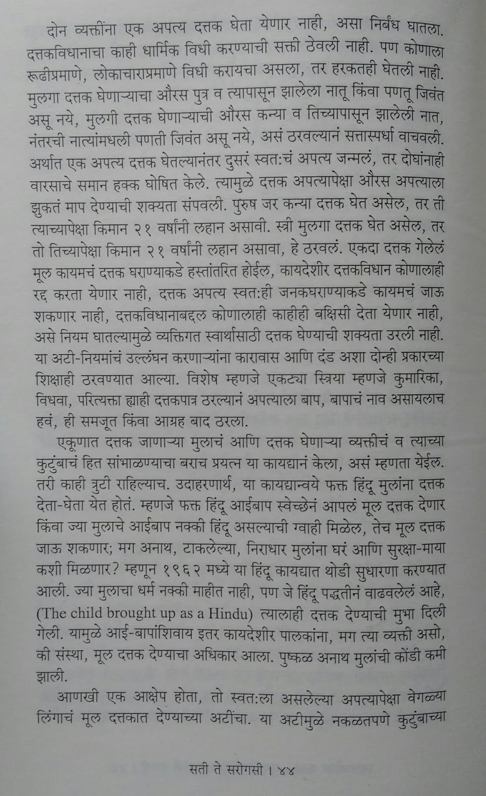 कायदे बनले तेव्हा एका झटक्यात परिपूर्ण कायदा बनला असं नाही तर वेळोवेळी कायद्यात सुधारणा करण्यात आला. त्यातल्या स्वातंत्र्यानंतर दत्तक कायदा झाला त्याच्या प्रक्रियेबद्दल पुस्तकात दिलेली माहिती.