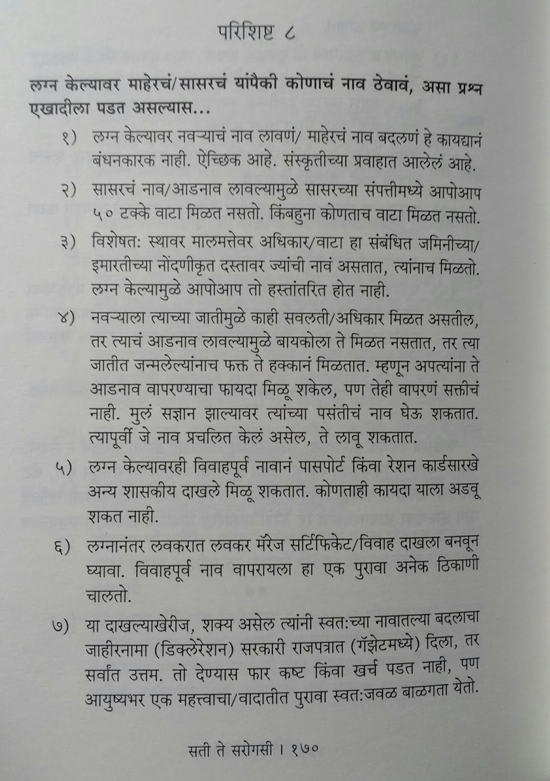 पुस्तकाच्या शेवटी ११ परिशिष्टे आहेत. “..तर काय करावं” हे सांगणारी ही परिशिष्टे आहेत म्हणजे अटीततीच्या प्रसंगात कायदा काय सांगतो; कायद्याची मदत घेताना काय प्राथमिक तयारी केली पाहिजे यावरची टिपणे यात आहेत.