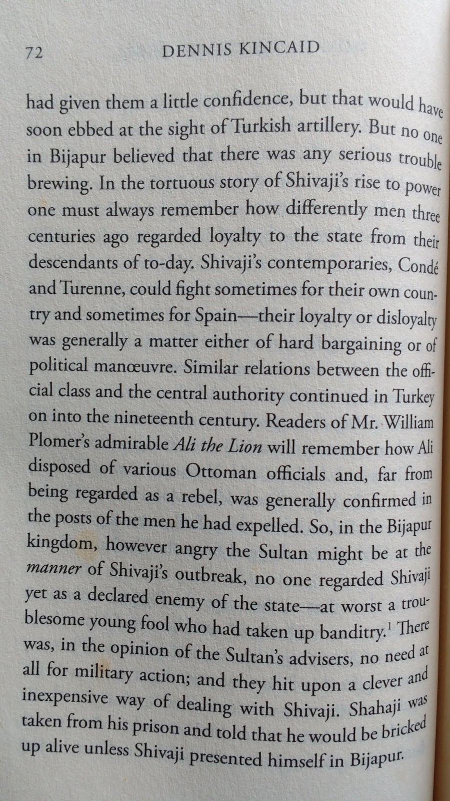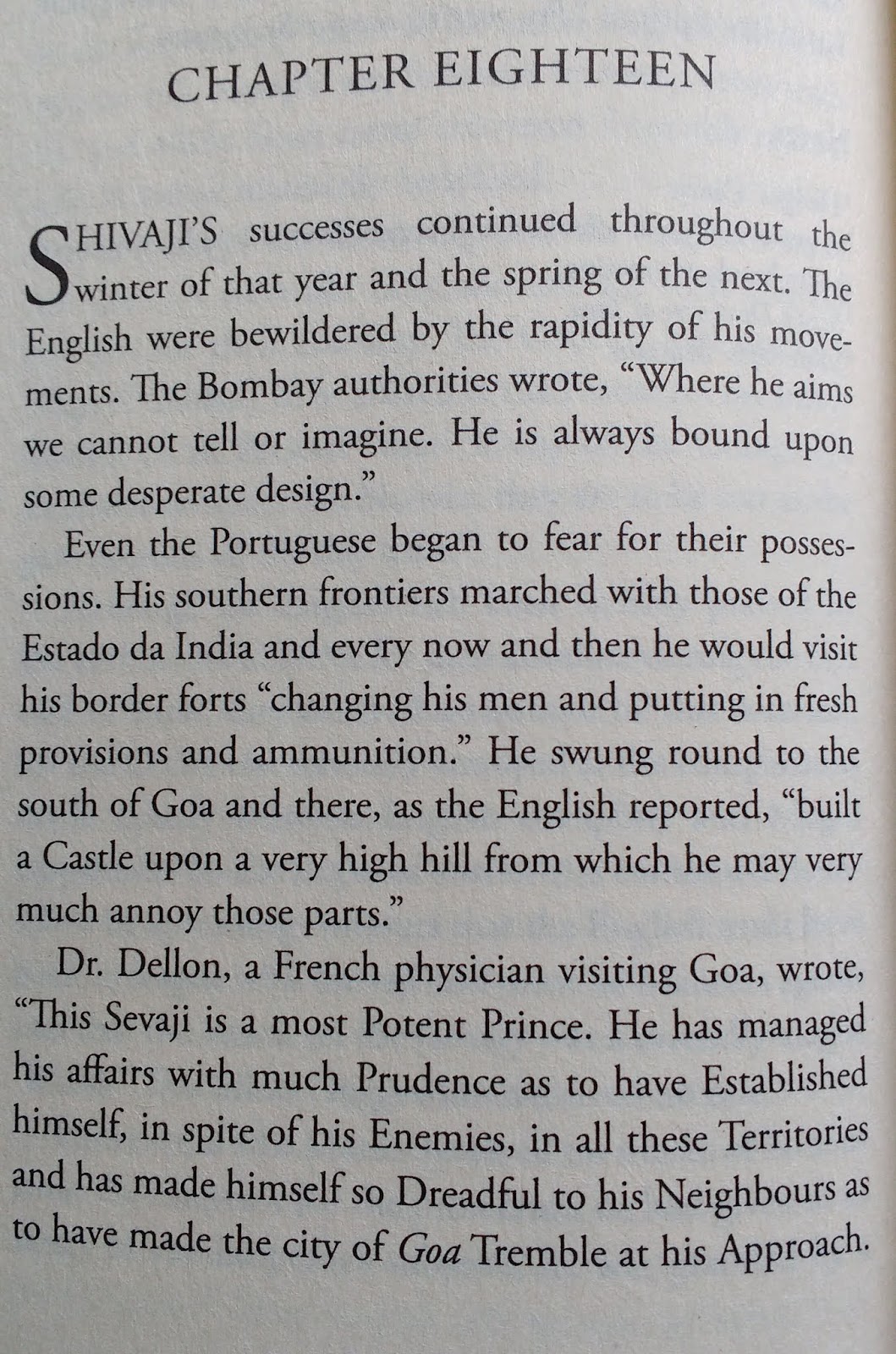 उदा. शिवाजी महारजांच्या सुरुवातीच्या कारवायांकडे विजापूर दरबाराने पूर्ण लक्ष का दिलं नसेल या बद्दल लिहिताना दिलेला युरोपिय संदर्भ