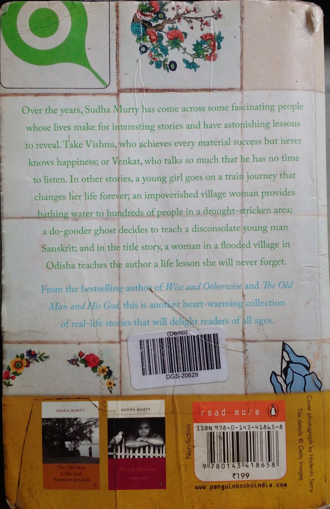 इन्फोसिसचे संस्थापक नारायण मूर्ती यांच्या पत्नी सुधा मूर्ती यांनी इन्फोसिस फाउंडेशन मार्फत मोठं सामाजिक काम उभं केलं आहे. तसेच आपल्या कथा-कादंबऱ्यातून साहित्य विश्वातही स्वतःची वेगळी ओळख निर्माण केली आहे. अशा सुधा मुर्तींचा हा इंग्रजी भाषेतील कथासंग्रह आहे.