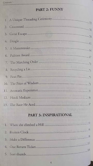 “Funny” गटात नावाप्रमाणेच थोडे मजेशीर, हलकेफुलके प्रसंग आहेत. लहानपणी मित्रांबरोबर रेल्वे प्रवासात टॉयलेट मध्ये काढलेली रात्र, हिंदी न येणाऱ्या आजीबाईचा मराठी न येणाऱ्या भैय्याशी मुंबैय्या हिंदीतला संवाद, परदेशात भारतीय खाण्याच्या घमघमाटामुळे पाकिस्तानी माणसातला “देसी” जागा होतो इ.