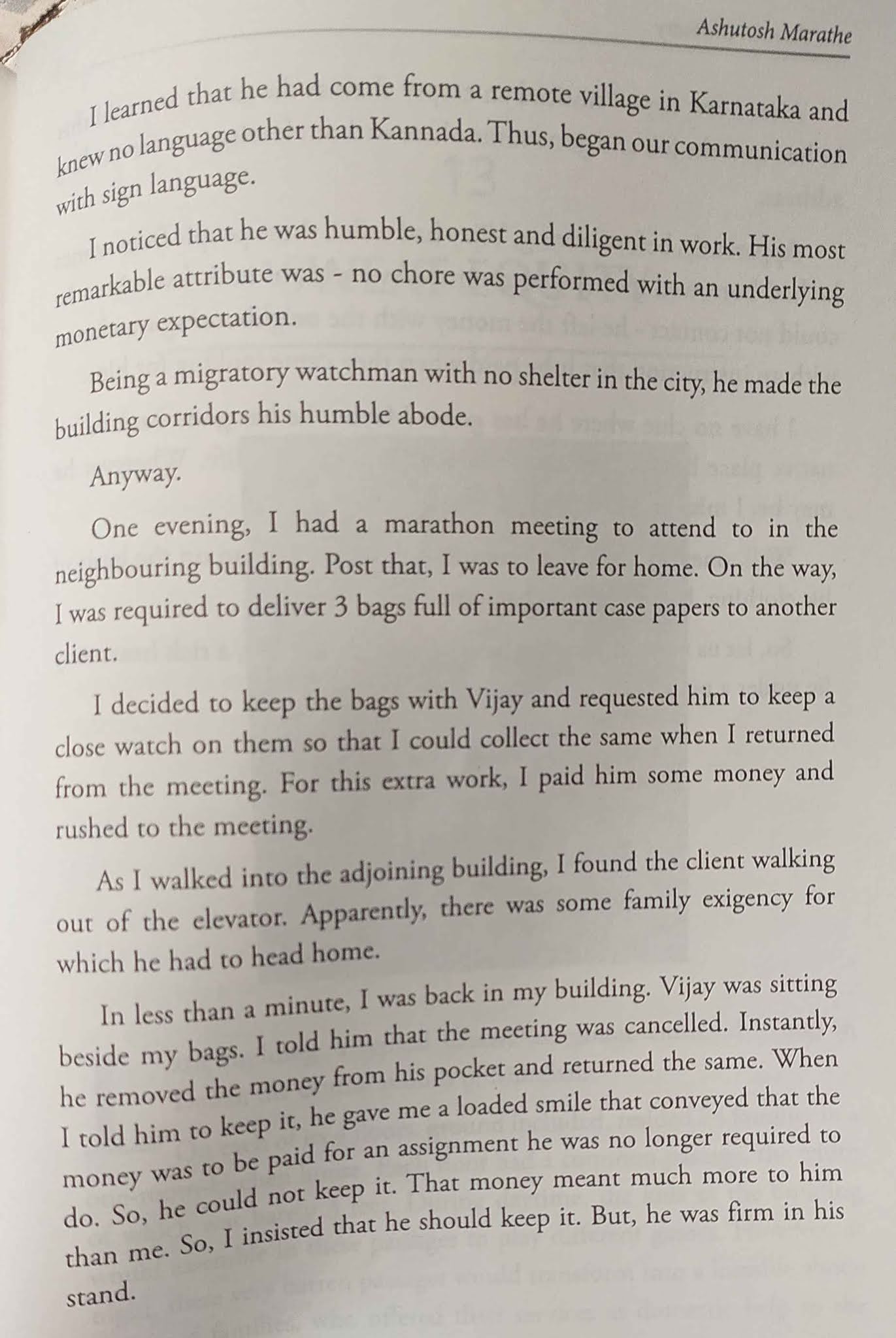 उदा. प्रामाणिक रखवालदाराचा आलेला हा अनुभव
