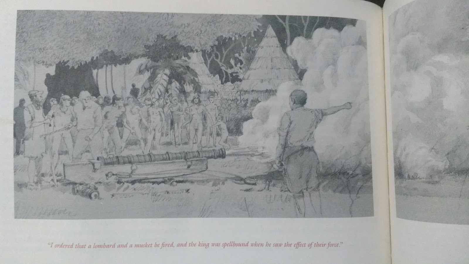 कोलंबसाने तोफेचा बार उडवून आदिवासींना आपलं सामर्थ्य दाखवलं तो प्रसंग
