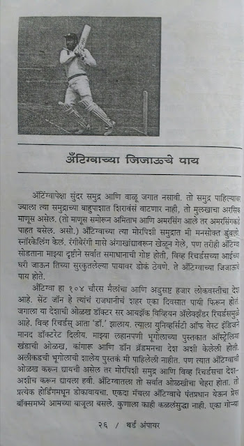माजी मास्टर्स – नावावरून्च लक्षात येत असेल की क्रिकेट मधल्या दिग्गज खेळाडूंचे गुणवर्णन करणारे हे लेख आहेत. ब्रॅडमन, विश्वनाथ, मेंडीस, कुंबळे, देवधर इ. वर लेख आहेत.