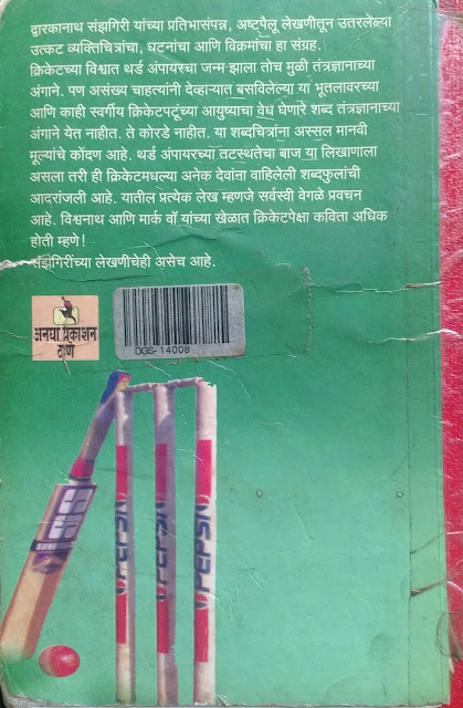 द्वारकानाथ संझगिरी (https://www.facebook.com/dwarkanath.sanzgiri/) यांना आपण कदाचित मराठी दूरदर्शन वाहिन्यांवरच्या क्रिकेट बद्दलच्या चर्चेत पाहिलं असेल. त्यांचे लेख सामना, लोकसत्ता किंवा इतर वृत्तपत्रांत वाचले असतील. हे पुस्तक त्यांच्या क्रिकेट बद्दलच्या पूर्वी प्रकाशित झालेल्या निवडक लेखांचा संग्रह आहे.