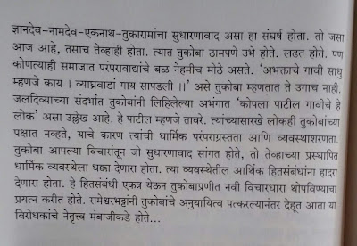 दोन्ही संतांची भाषा चारशे वर्षं जुनी असल्याने सगळेच शब्द नीट कळत नाही. मराठी असूनही काही वेळा दुर्बोध वाटते. लेखांमध्ये या अभंगांचे, ओव्यांचे मराठीत शब्दशः भाषांतर द्यायला हवे होते.म्हणजे त्याच्या आजुबाजूचे विवरण अजून चांगलं समजलं असतं. वृत्तपत्रातल्या शब्दमर्यादेमुळे तेव्हा ते शक्य झाले नसेल पण पुस्तकात तसे देणे जमले असते. तळटीपांच्या स्वरुपात दिले असते तर लेखाचा ओघही बिघडला नसता.