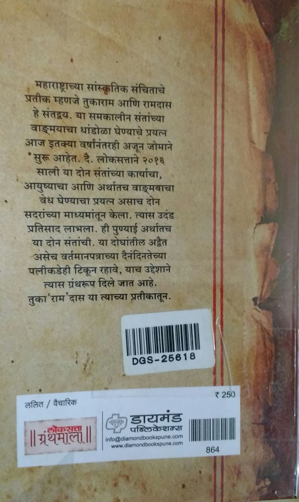 तुकाराम महाराज आणि रामदास स्वामींवर लोकसत्तामध्ये प्रकाशित झालेल्या लेखांचा हा संग्रह आहे. तुकाराम महाराजांवर २६ आणि रामदास स्वामींवर २१ लेख आहेत.