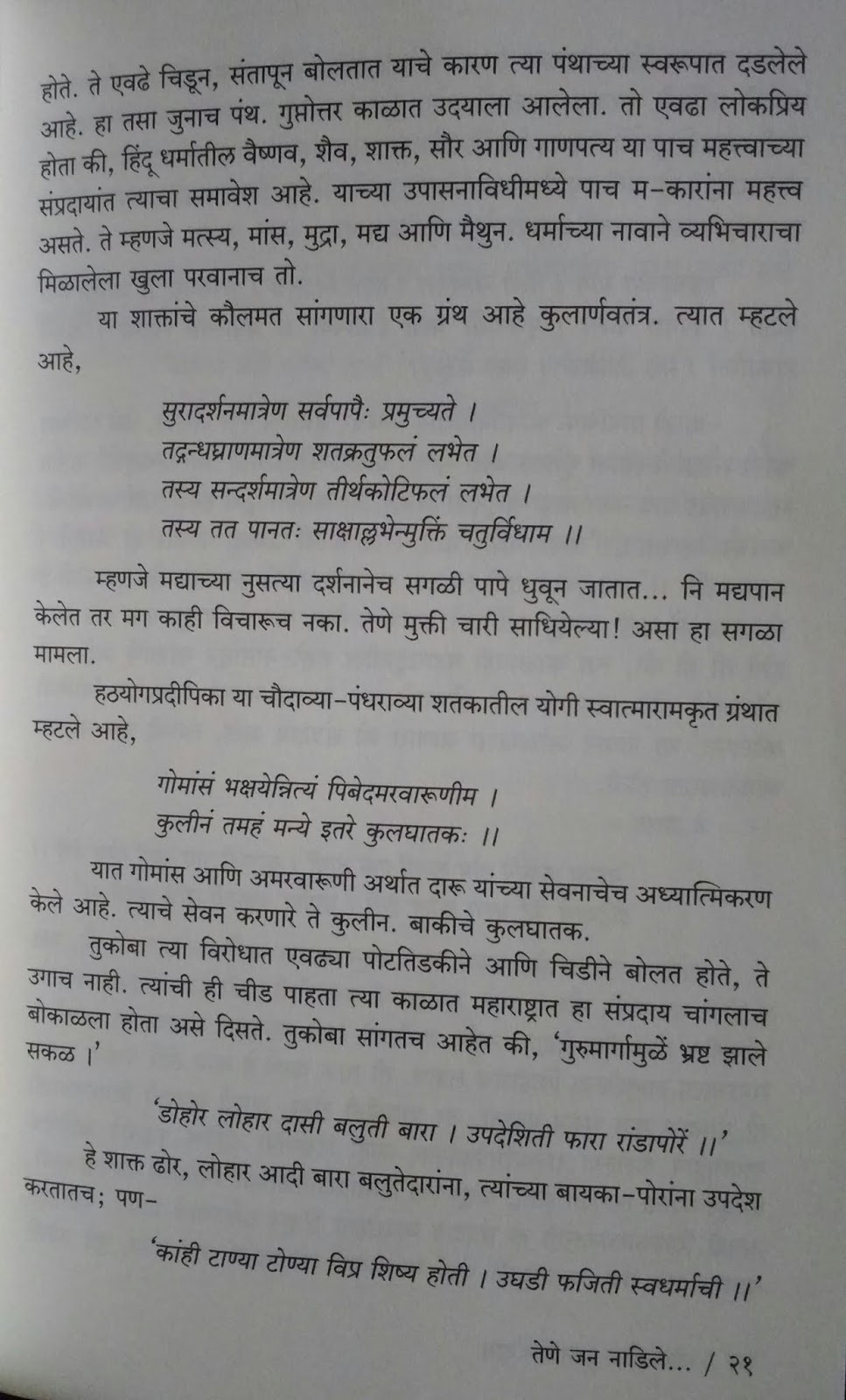 कर्मकांड, चमत्कार करून लोकांना भुलवणारे, हिंसा-मदिरा-मैथुन यांना उपासनेत स्थान देणऱ्या उपासना पद्ध्तीवर ते कसा प्रहार करतात आणि त्यामगची पार्श्वभूमी पण लेखक समजावून सांगतो.