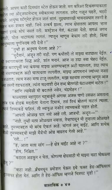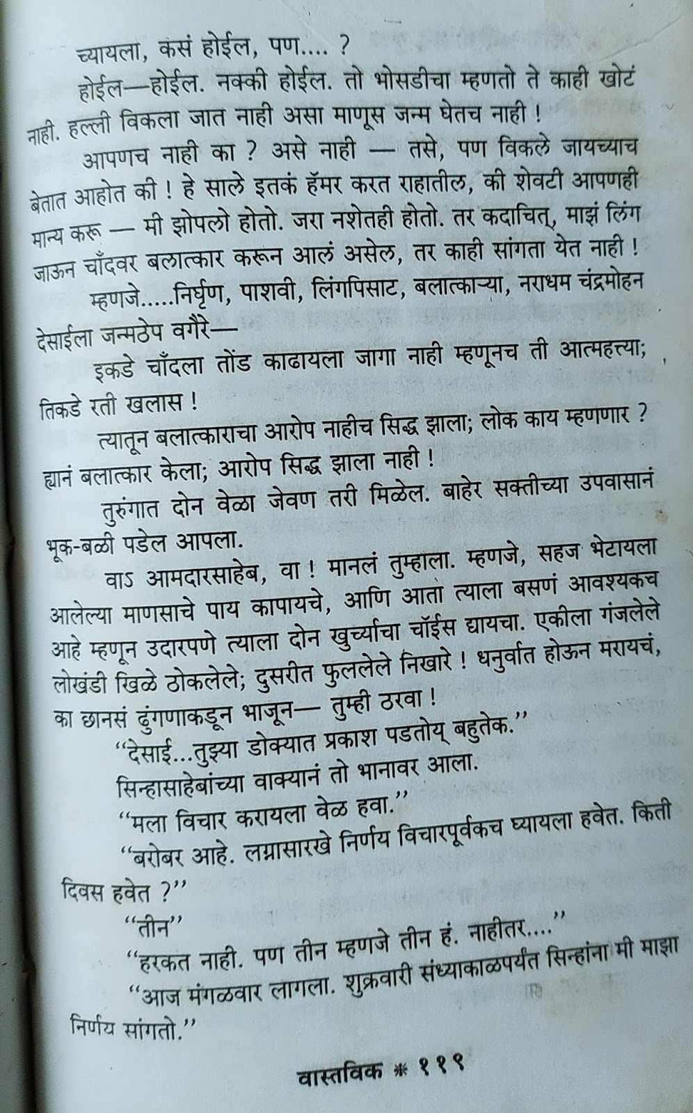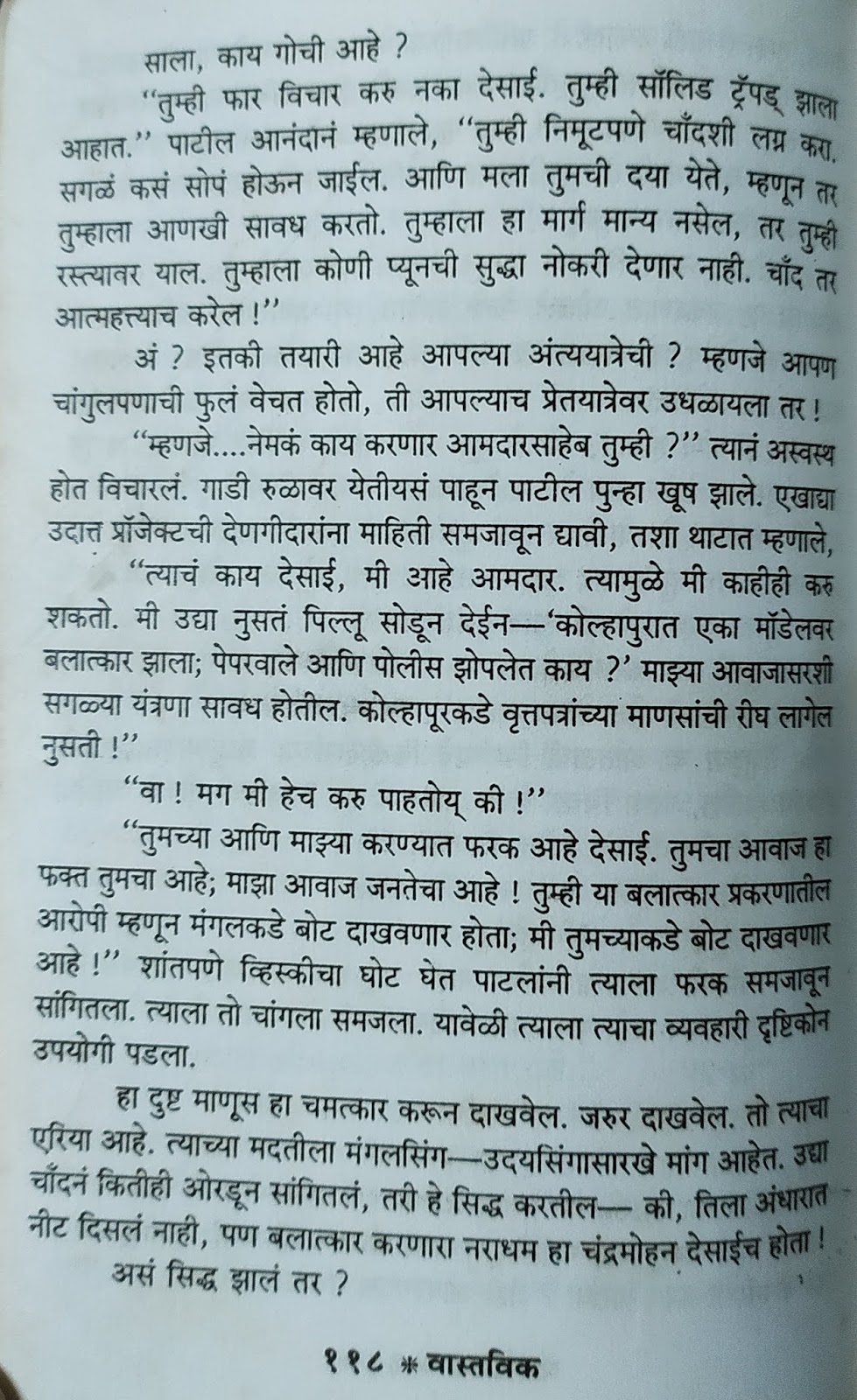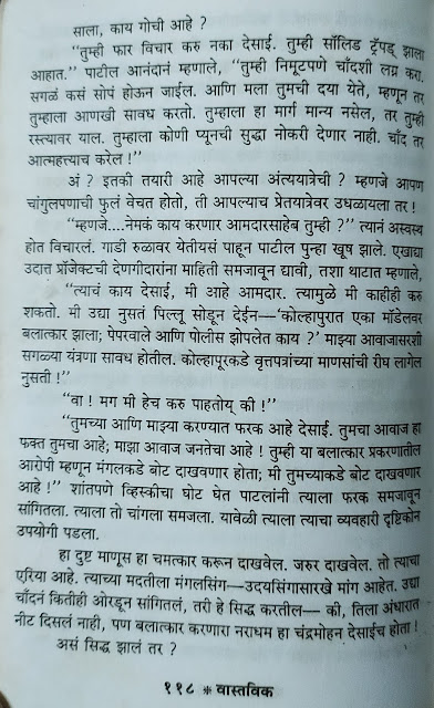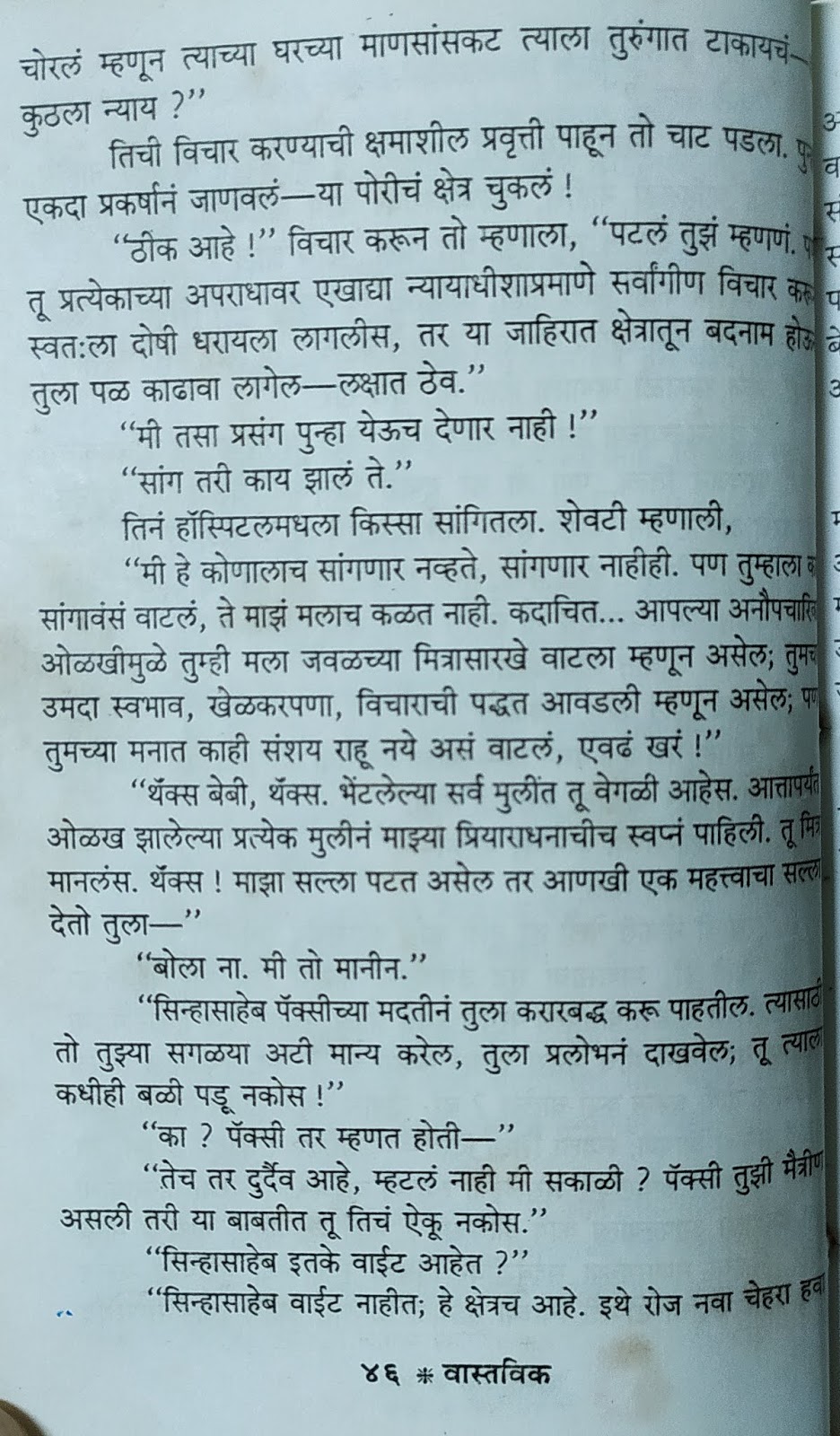 तरीही प्रसंग पटापट पुढे जातात, खटकेदार संवाद, अजिबात पाल्हाळ न लावता पुढे जाण्याची शैली यामुळे वाचायला कंटाळा येत नाही. पॉकेटबुक आकारात छोटी कादंबरी असल्यामुळे एका बैठकीत पूर्ण करू शकता. चार घटका हलकेफुलके मनोरंजन म्हणून ठीक आहे.