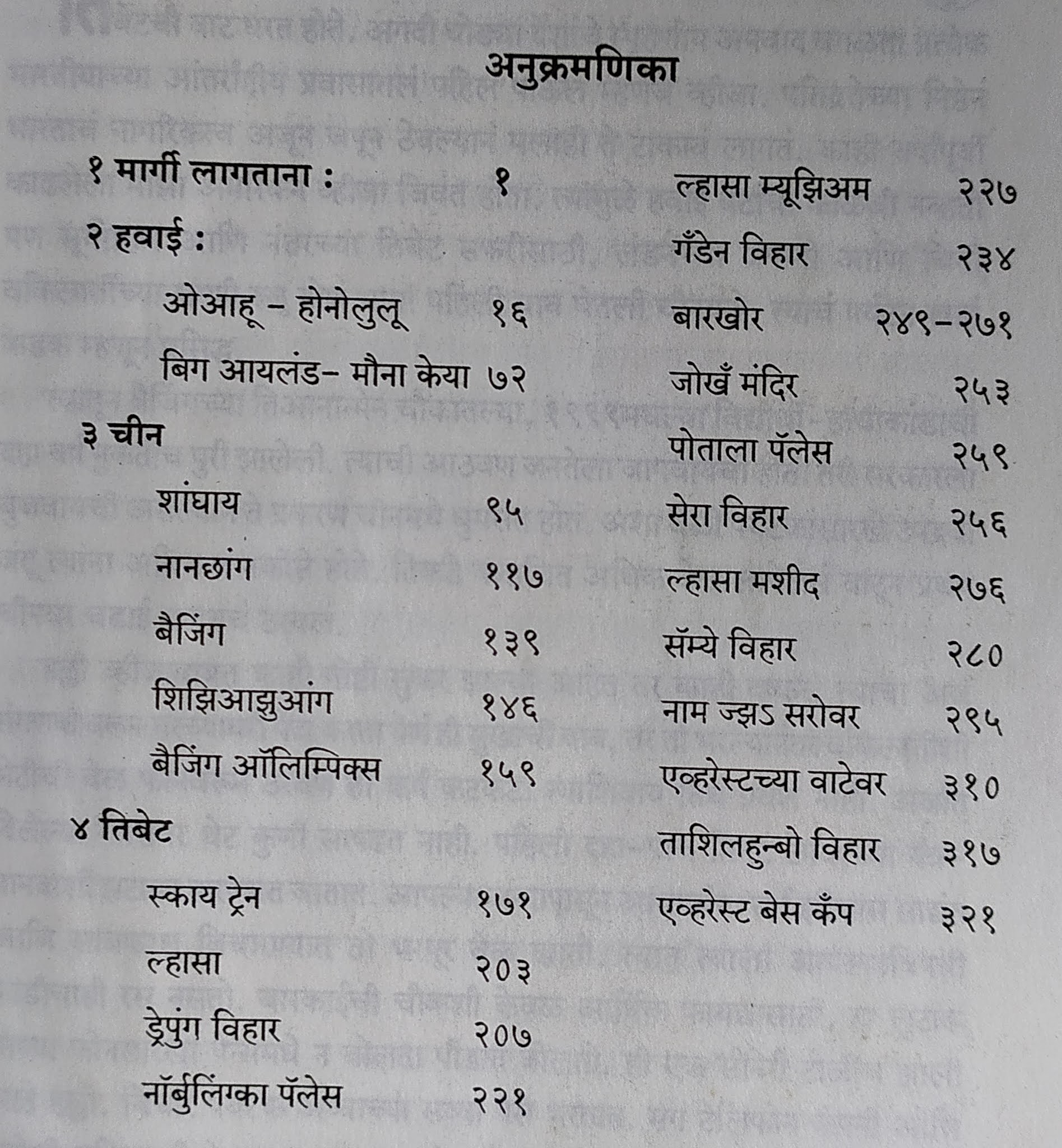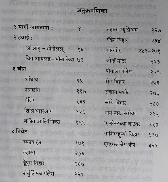 फक्त तिबेटच नव्हे पण चीनचा व्हिसा मिळवणे, मग तिबेटला जायचे परमीट मिळवणे हा सुद्धा एक अनुभवच होता. लेखिकेने तिथपासून आपल्या वर्णनाची सुरुवात केली आहे. पण तिबेटला पोचण्यापूर्वी त्या अमेरिकेतील हवाई बेटे आणि चिनच्या काही शहरांना भेटी देणार होत्या. खास खग्रास सूर्यग्रहण बघायला शांघायला. त्यामुळे पुस्तकात सुरुवातीला हवाई बेटे, पर्ल हार्बर यांचे वर्णन आहे. तिबेटवर हवाई फ्री !! पुढे चीनमधल्या शहरांना दिलेल्या भेटी, त्यांनी शांघायला बघितलेल्या ग्रहणाचे, आधी बघितलेल्या ग्रहणाचे भावस्पर्शी अनुभव आहेत. डॉ. कोटनीस यांचे स्मारक त्यांनी शोधाशोध करून बरीच खटपट करून बघितलेच.