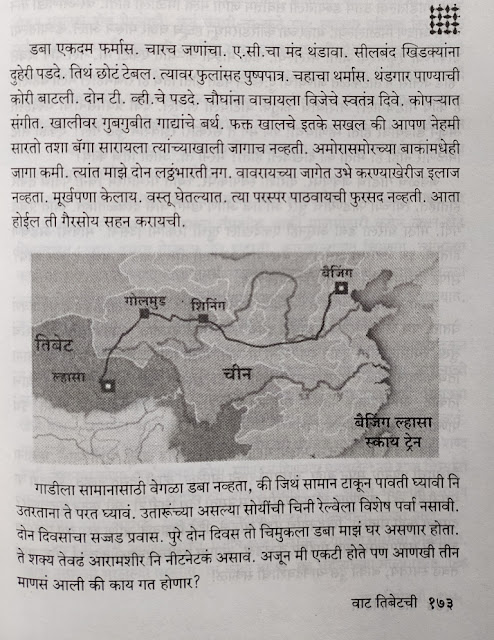 बीजिंग पासून ल्हासा पर्यंत चीनने रेल्वे सुरू केली आहे. डोंगर-दऱ्या नदी-नाले पठारे ओलांडत हजारो फूट उंचीवरून जाणारी रेल्वे चीनच्या दृढनिश्चय याचं तंत्र कौशल्याचा आणि विस्तार वादाचं संमिश्र उदाहरण. या रेल्वे प्रवासापासून आपली लेखिकेबरोबरची तिबेट सफर खऱ्या अर्थाने सुरू होते. त्याची ही एक झलक.