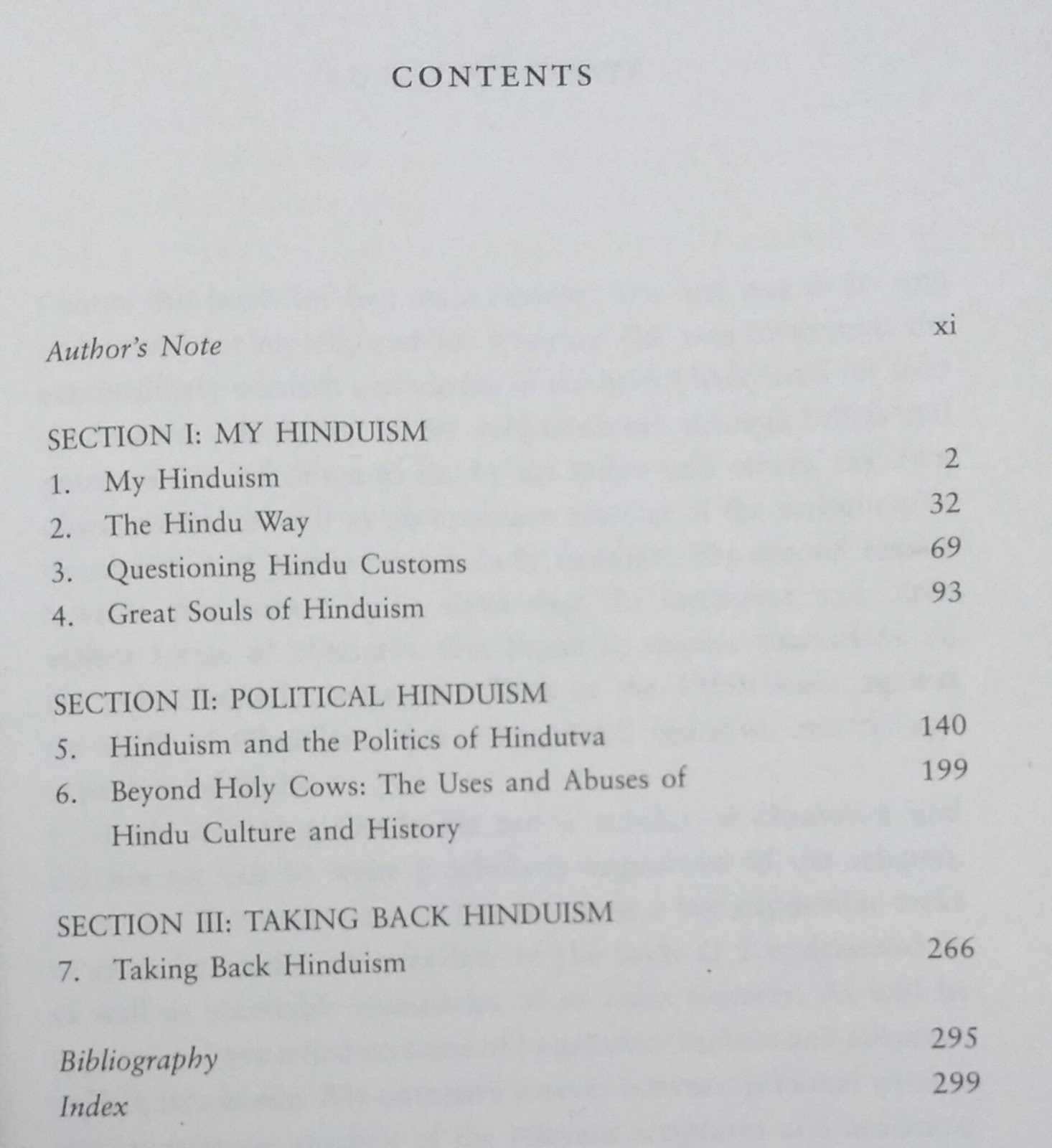 लेखक पुस्तकाची सुरुवात “मी हिंदू का आहे” या प्रश्नापासून करतो. त्याचे उत्तर “तो हिंदू कुटुंबात जन्माला आला म्हणून तो हिंदू आहे” असे आहे. त्याला लहानपणी धर्माची ओळख कशी झाली; त्यांच्या घरात खुलं वातावरण कसं होतं; तीर्थयात्रा-देवपुजा हे सगळं चालू असतानाही प्रथापरंपरांबद्दल खुलेपणा कसा होता; त्यामुळे धर्माकडे बघण्याची मोकळी दृष्टी, चिकित्सक वृत्ती त्याच्यात आली हे त्याने सांगितलं आहे.